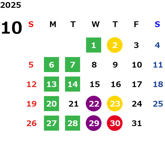 本日は10月の店休日のお知らせです!