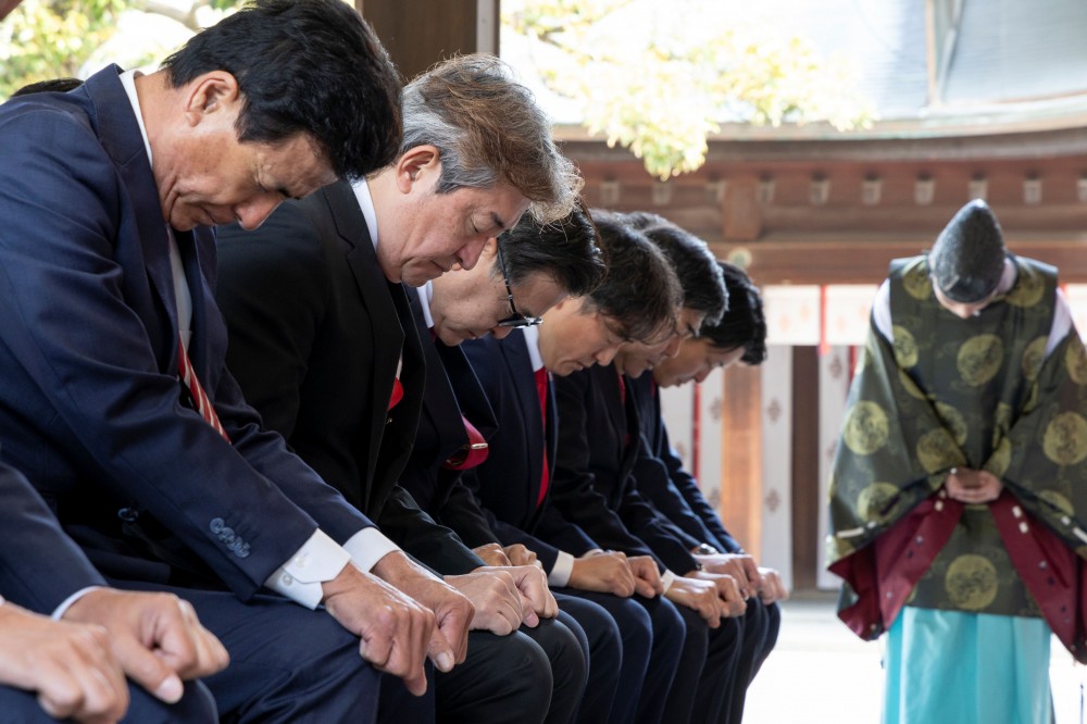金子社長、森脇GM兼監督を始め、選手、関係者の全員で今年の必勝祈願を執り行いました。