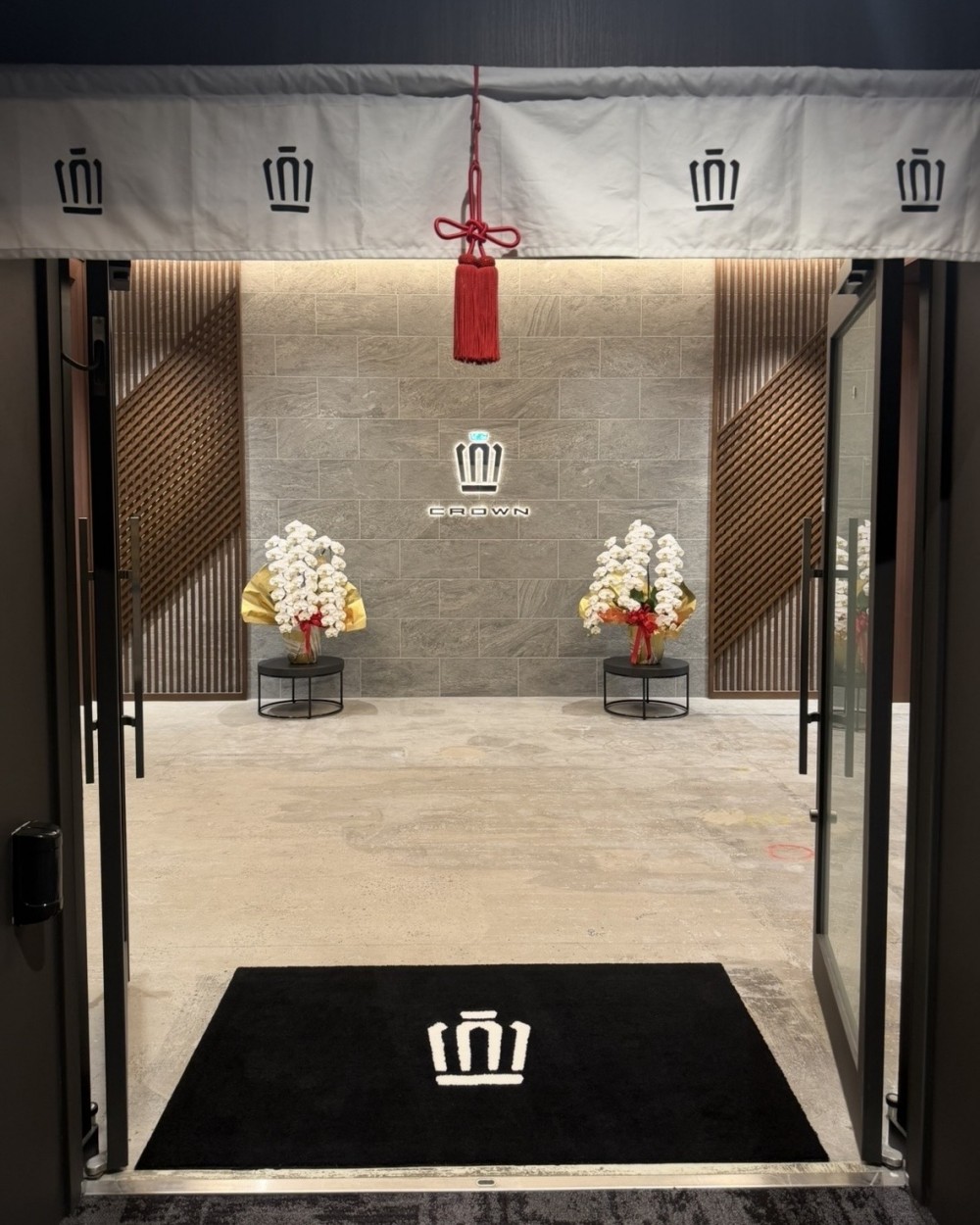 また、THE CROWN 福岡天神のエントランスには、美しい胡蝶蘭が飾られています。ご来店いただいたお客様にも春らしい明るさやお祝いムードを感じていただけると嬉しいです。