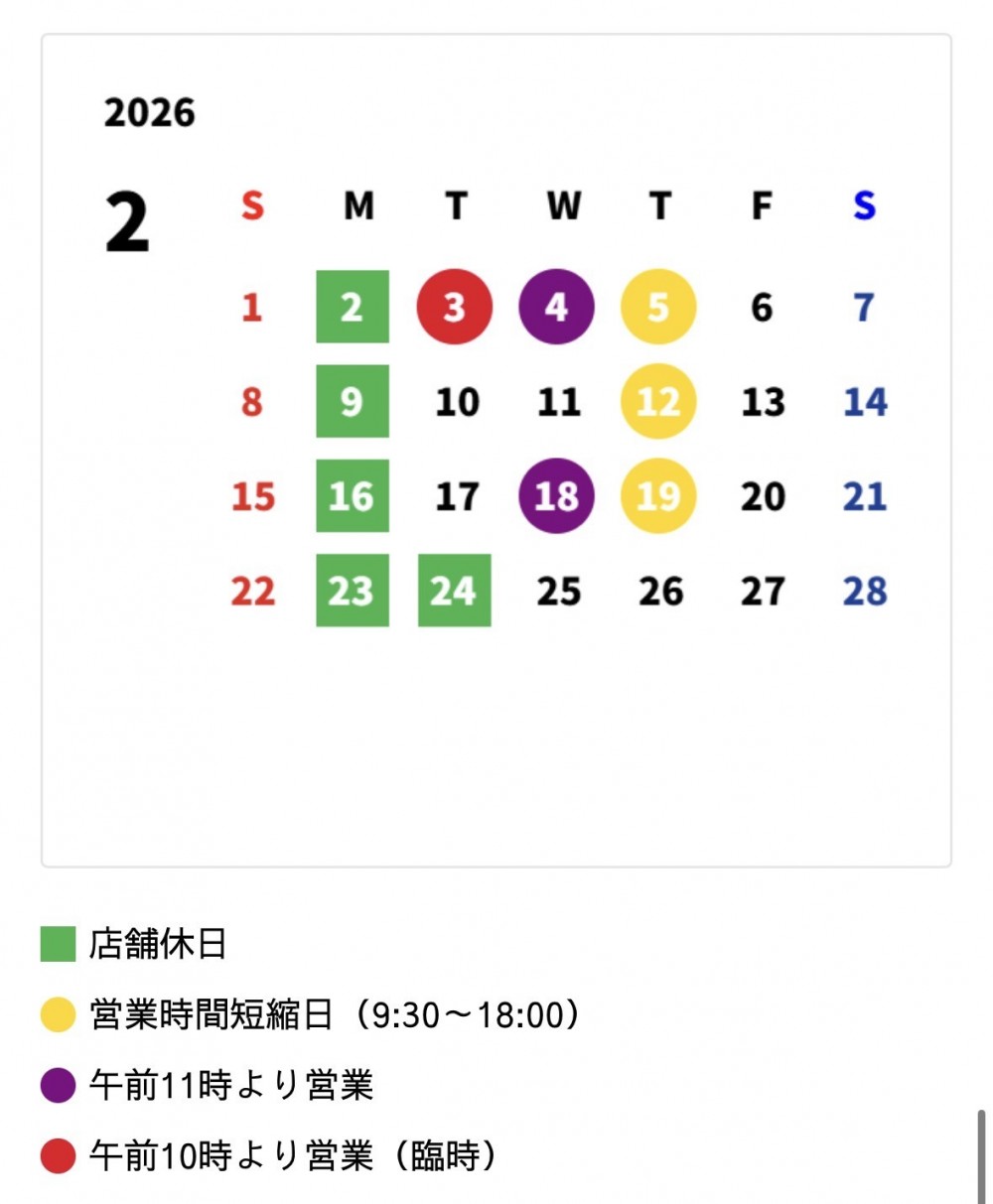 本日は2月営業日のご案内です