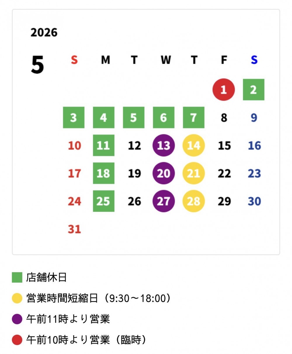 店休日のお知らせ