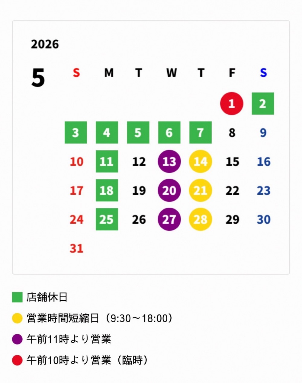 営業日のご案内です