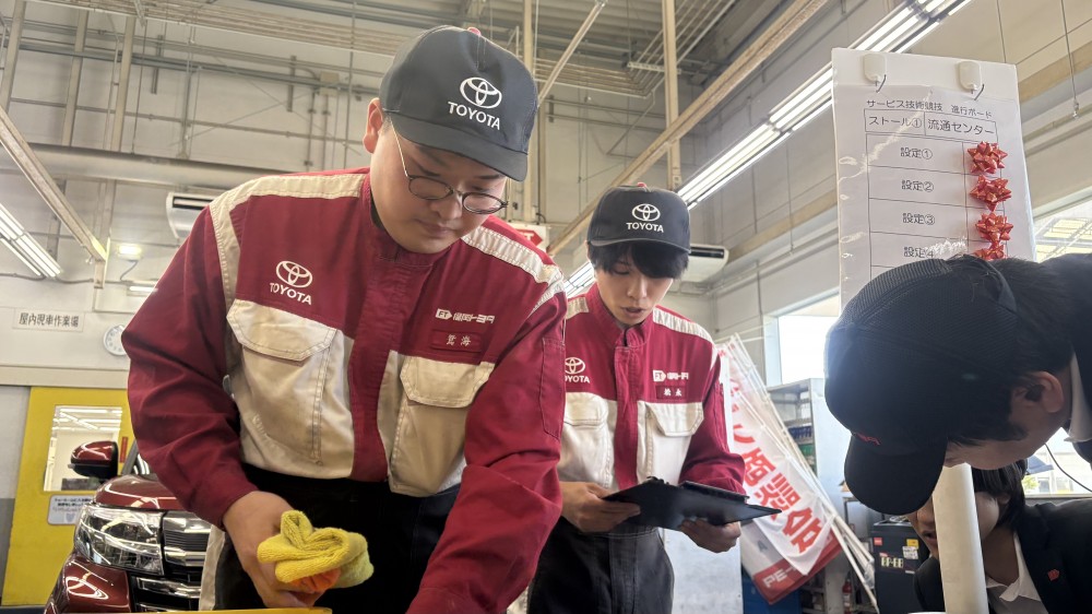 ご来店頂いた方に飲み物を聞いて実際に出したりショールームの掃除、試乗車の洗車など大活躍でした