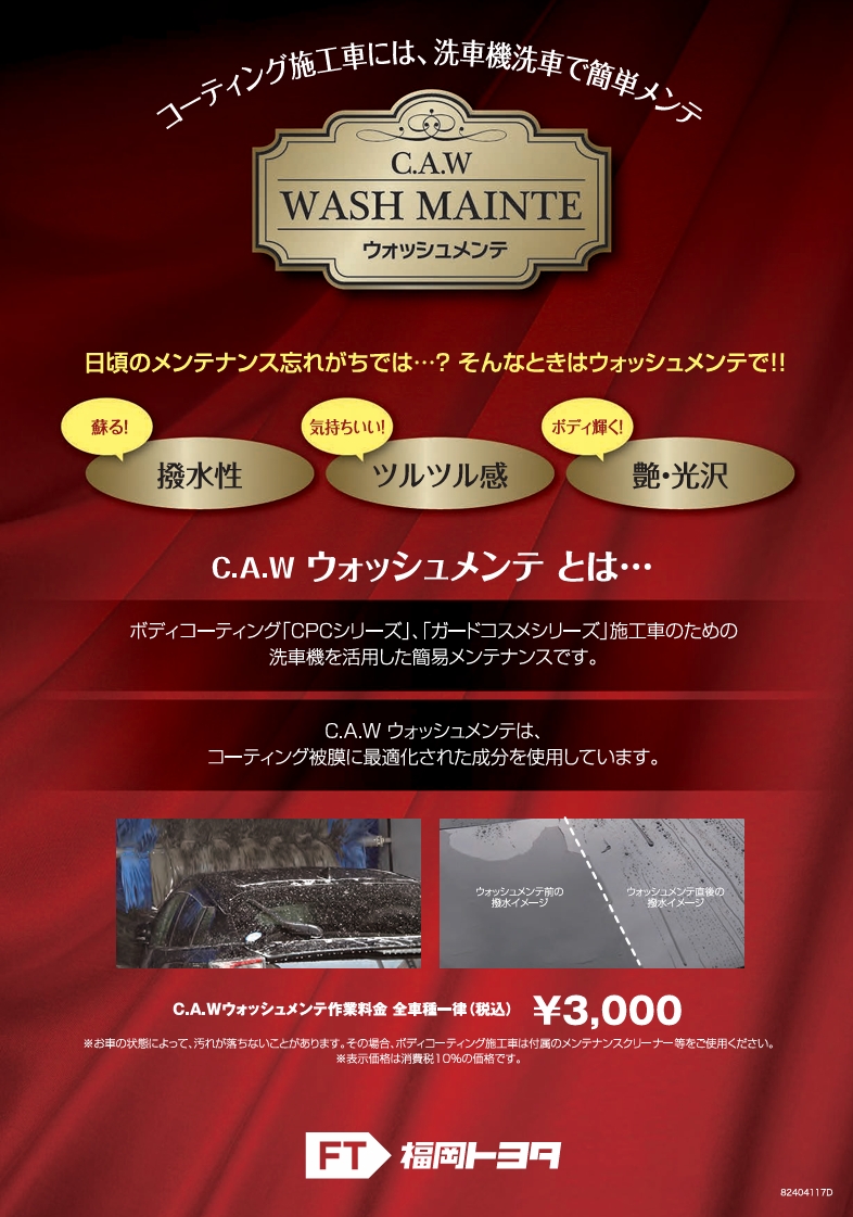 福岡トヨタではウォッシュメンテ(撥水洗車)
